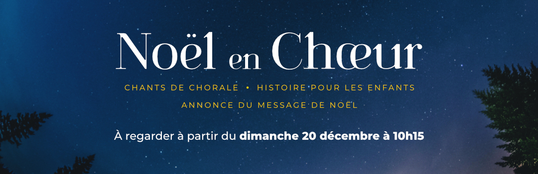 Noël en choeur. Venez écouter l’histoire passionnante de la venue du sauveur, Jésus-Christ. Annonce du message de Noël, chants de chorale et histoire pour les enfants sont au programme.